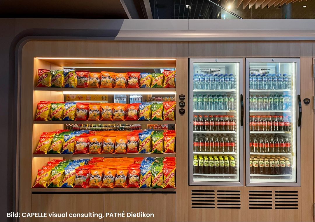 HANDBUCHERSTELLUNG PATHÉ KINOS CAPELLE vc durfte für die Pathé Kinos ein Handbuch mit Richtlinien und Präsentationsgrundsätzen für die Produktplatzierung auf der Verkaufsfläche erstellen. Im Zuge dessen, wurden im Kino in Dietlikon Masterlayouts erstellt.